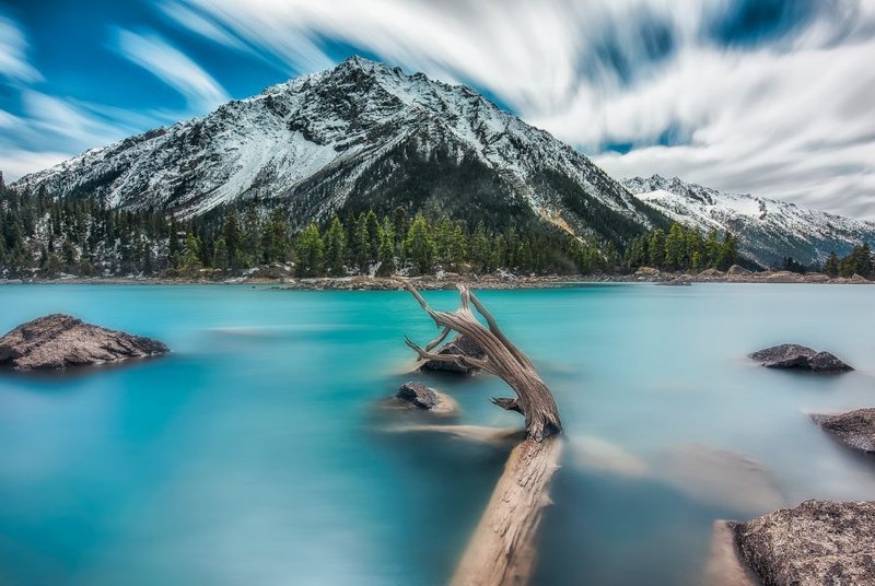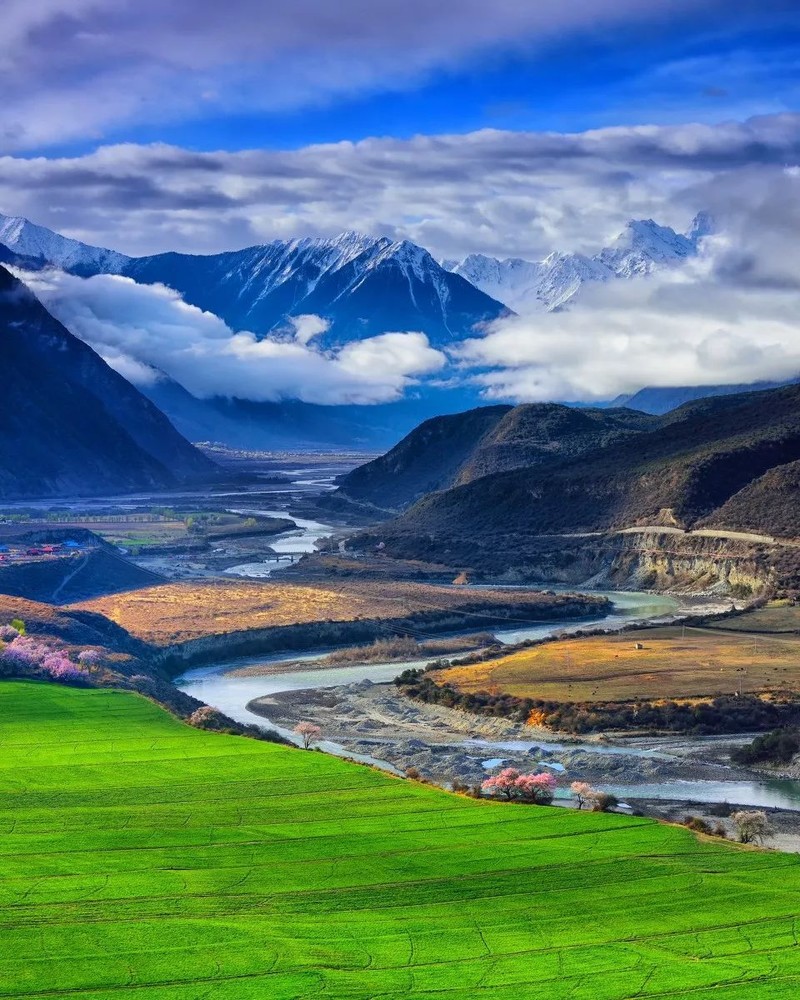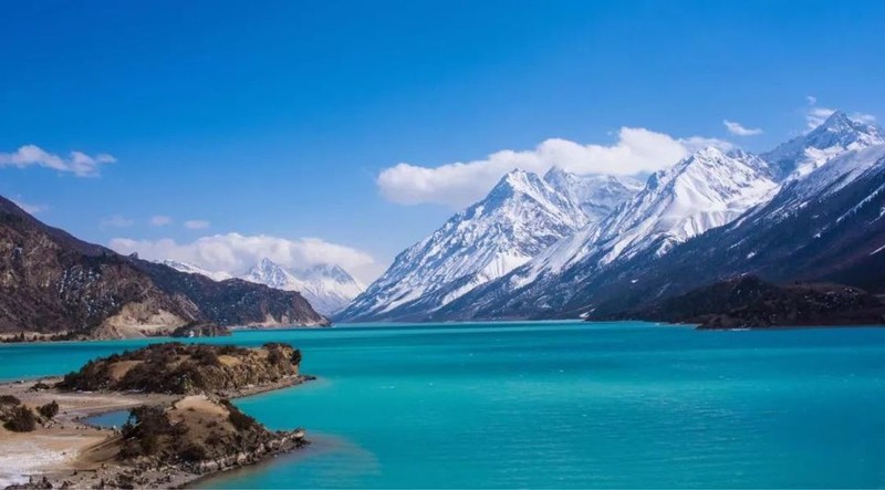 然乌湖的静和蓝是远近闻名的,湖中极少看到枯枝杂物,湖周景色各不相同。湖边大片碧草如茵的草甸,和着碧蓝的湖水、白雪皑皑的雪峰,景色如诗如画。