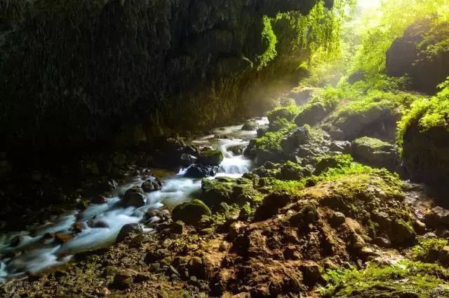 入峡谷的小径从遮天蔽日的枯藤老树下穿越下坠,宛如一条绿色的隧道通往地心,满眼都是绿意,空气也是透彻心脾。
