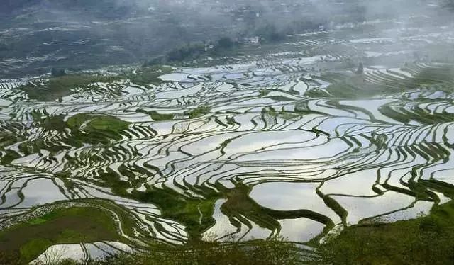 龙胜梯田一年有多种景色,日出、夕阳、蓄水时、收货时,都是美景。