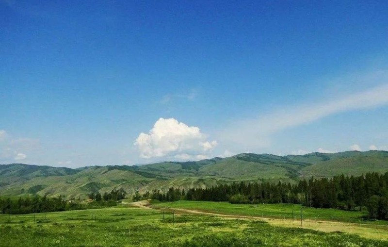 它被称为最美边防公路是因为这里的风景元素最为丰富:蓝天白云、山峦河谷、草原牧群、村庄油菜花还有白桦树,还有是那湛蓝的额尔古纳河。