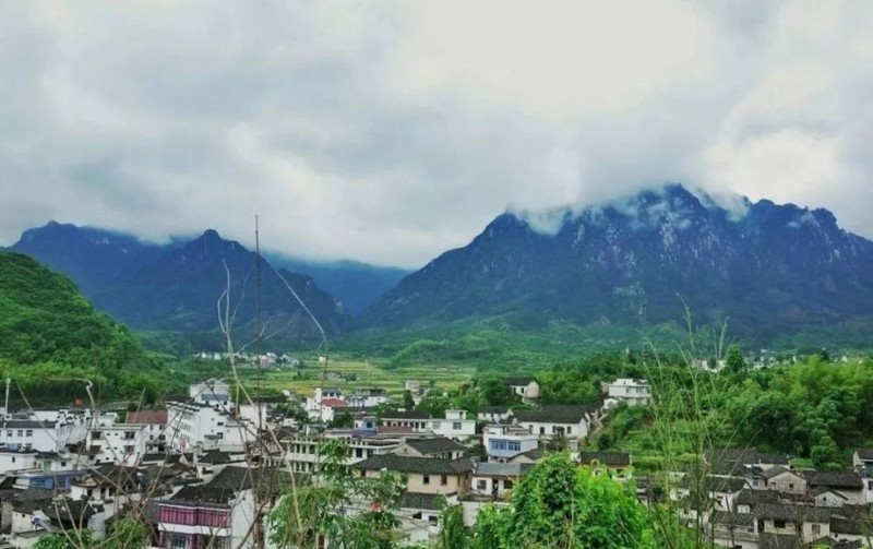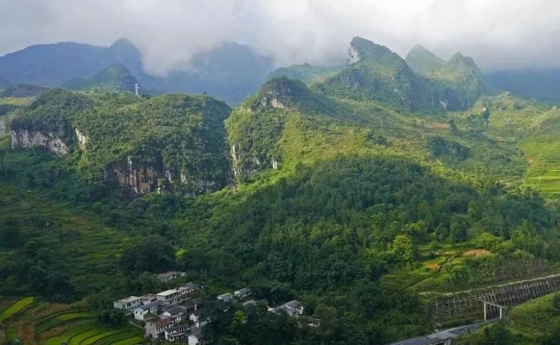 云雾缭绕的地方隐约可见几户人家,停车驻足,沉醉在眼前如诗如画美景之中。