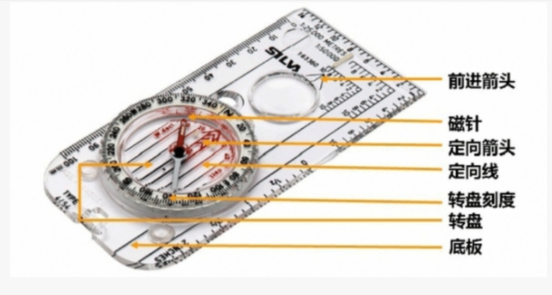 指南针可使地图和实际地形的方位一致,准确判断你所在的地点和寻找的目的地的方位。使用指南针务必水平地拿着,而且要远离以下列举的各种物品,才可避免磁针发生错乱:指南针应离铁丝网十米以上,高压线五十五米以上,汽车和飞机二十米以上,以及含有磁铁如磁性容器等十米以上。