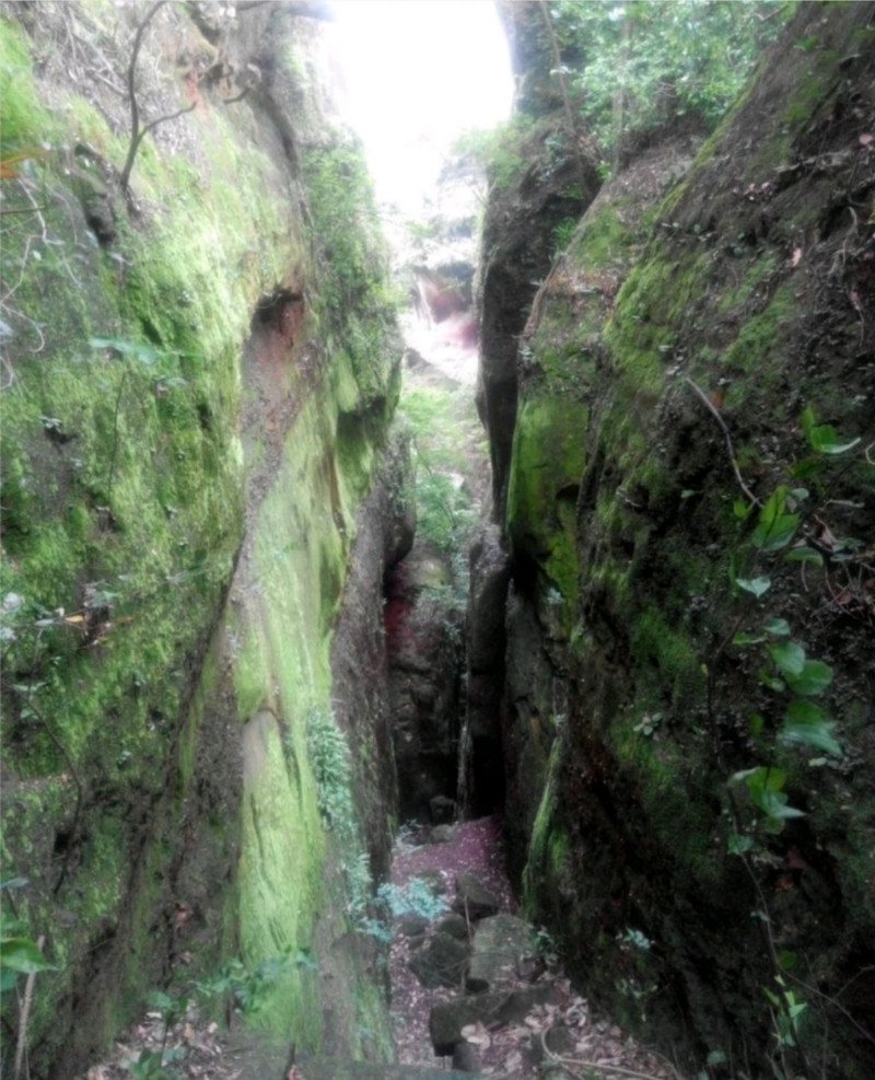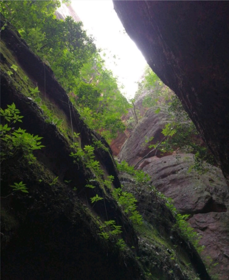进山一探究竟,山虽不高,但寨门坚固,“迷宫”错落有致,贯穿整个山谷,阳光从一线天射入巷谷,谷底及四周岩壁上的植物努力的向上生长着,在巷谷穿洞底你能看到滴水干枯的痕迹及嗅到一股潮湿而腐败的气味,我们今天也只是走了一些比较简单的巷谷,有些巷谷很长很窄很深,据说还没人走通过,我们也不敢冒然深探,此次探秘我们只是进入了这巷谷群的冰山一角,更多的巷谷只能期待以后再次探秘了。