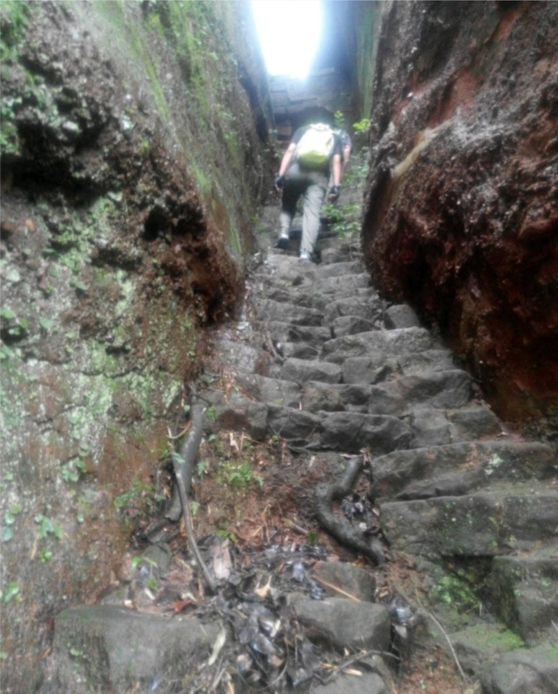 沿着两座山峰的夹缝曲折前行,浑然天成的巨石宛如被利斧破开,让人啧啧称奇。待到登顶,才知“只缘身在此山中,云深不知处”!