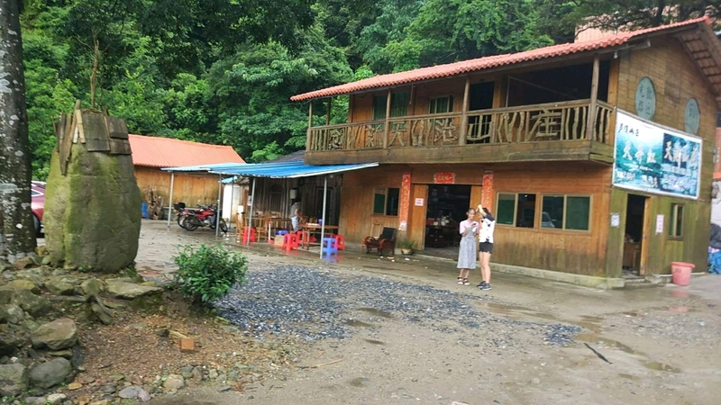 之后开始进山,上山暂时无公交车直达,不是自驾的朋友可打摩的,回程要预约,价钱自谈。上山只有一条一车道的水泥路沿峡谷而上,路况还可接受,尽头是一个小型发电站,大约40分钟车程,在半山腰,旁边是天池山庄(谨此一家)。