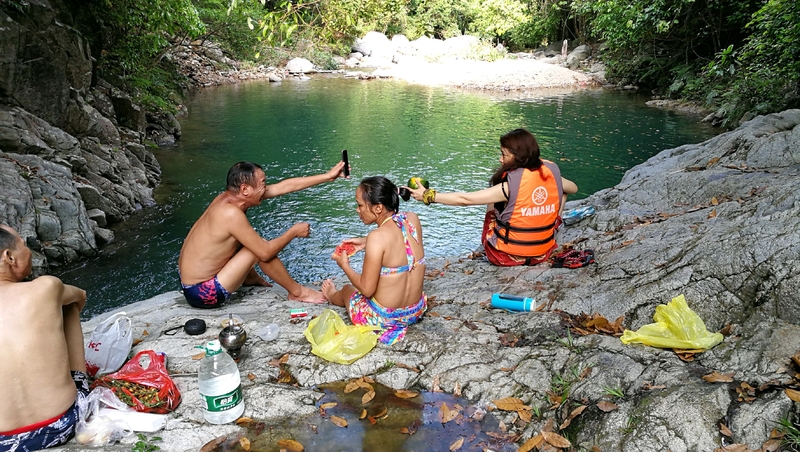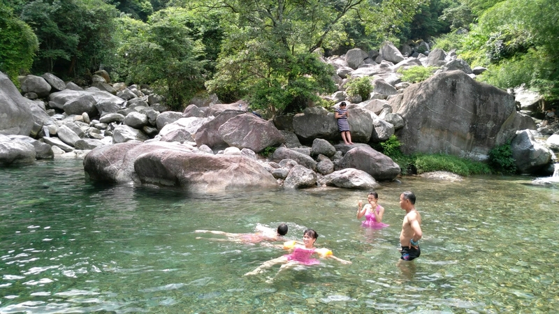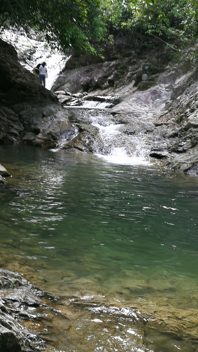 别以为很浅,,2米来深吧,水太清的一个错觉。提醒穿越峡谷的朋友最好带登山杖或砍竹棍用来试水,因为一路上有很多地方要涉水而行。