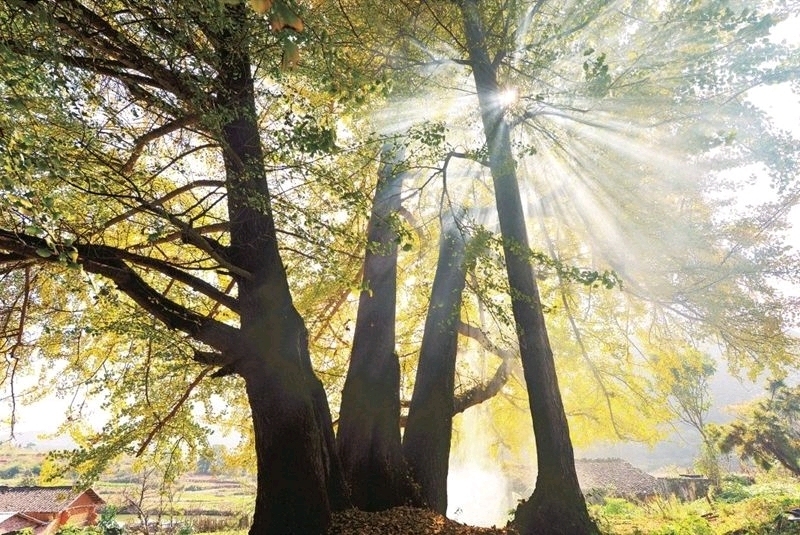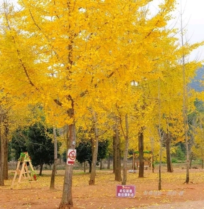 小江镇漫山遍野的银杏林,是南国不可多见的一道深秋金色的风景线。