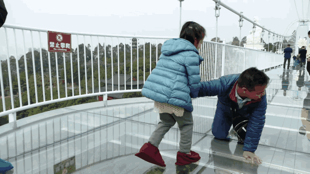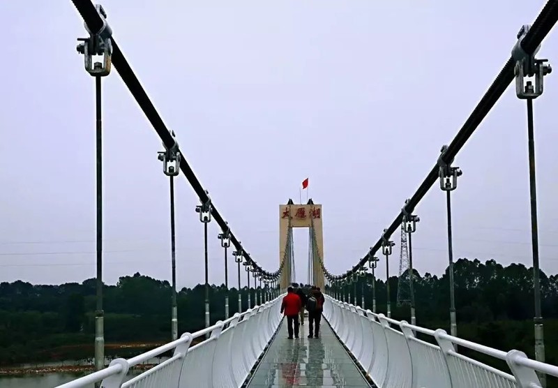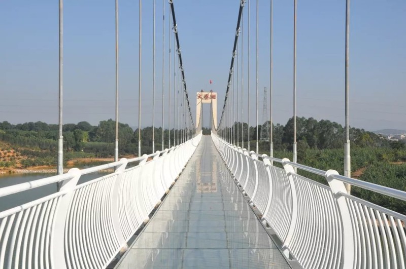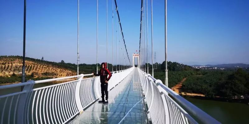 在桥上俯瞰,每块玻璃的透光率非常高,桥下湖水碧波荡漾,清澈如镜,人走在上面就像悬空一样,有种凌波微步的感觉;从桥上眺望远处风景,湖光山色尽收眼底。