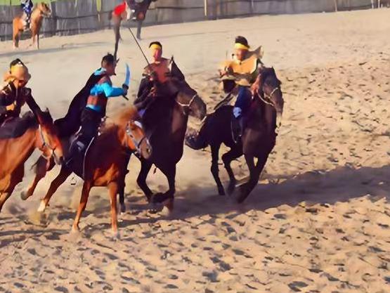 在这里,你还可以观看精彩的蒙古马术表演,骑手们精湛的技艺令人赞叹。同时,也有机会参与传统的“那大慕”蒙古民俗活动,男子三竞技赛马、射箭、摔跤等,感受蒙古族的豪迈与热情。