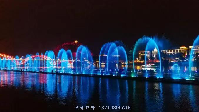 柳江大型音乐喷泉与柳江明珠水上大舞台一起,与文慧桥辉映,形成最唯美的柳州夜景,世界上江面最大升降浮式喷泉——柳江江面的音乐喷泉全长315米,宽40米,设有832套喷头,喷出的水景高达100米