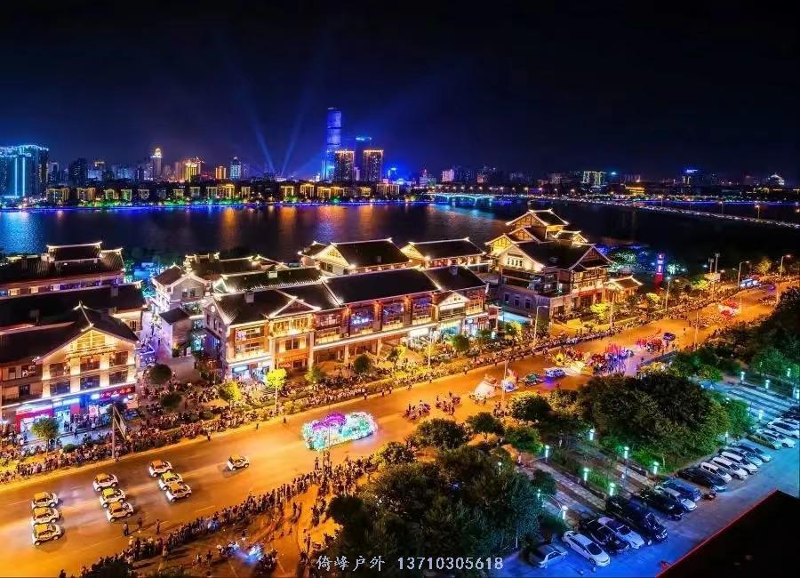 待到华灯初上,古镇灯火辉煌、流光溢彩,复古汽车主题的移动小吃车和各类小摊位齐齐开张,人流如织,昔日人声鼎沸的老码头,如今焕然一新迎接四方宾客,旧时繁忙热闹的景象在此方时空重现。行至柳江边,静静感受夜晚的江风吹拂,听着隐隐传来的吆喝声和嘻笑打闹,颇有“闹中取静、忙里偷闲”的意味。