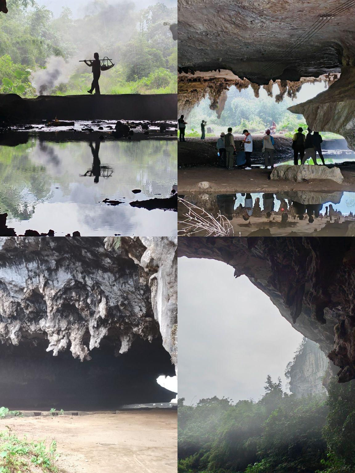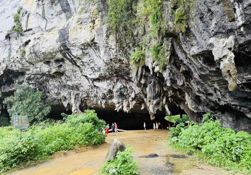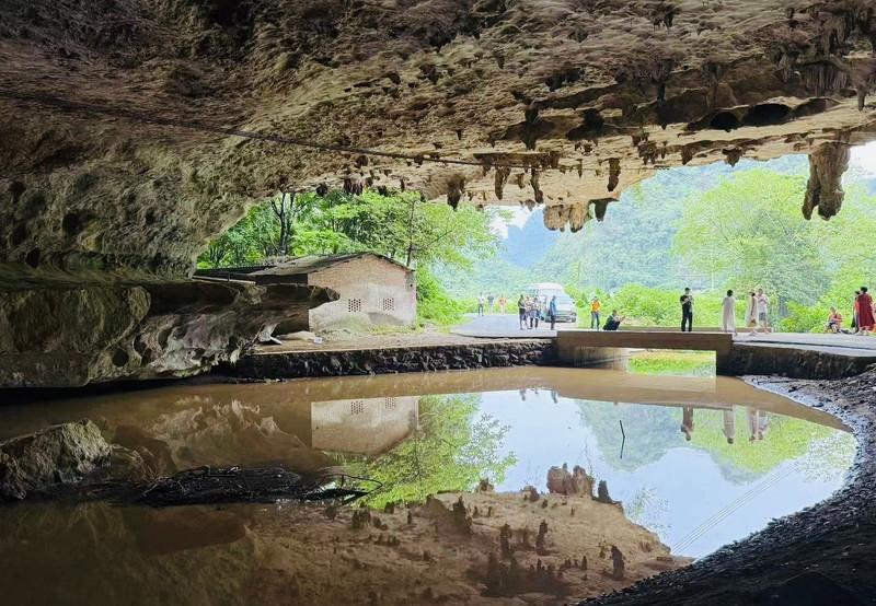 溶洞周边风景秀丽,被群山包围,从洞内向外望去,是一片开阔的农田,悠闲吃草的黄牛,宛如一幅美丽的田园画卷。
